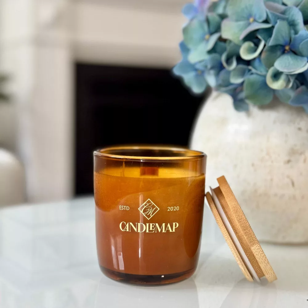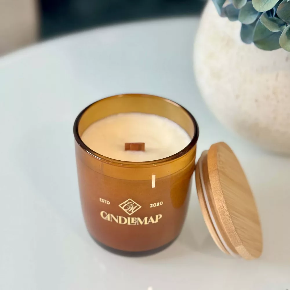 The maple wood wick gently crackles like a small fireplace, creating a cozy and calming atmosphere.